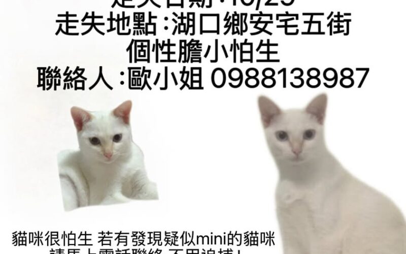 【尋找貓咪~Mini 地點 新竹縣湖口鄉】 轉貼內
