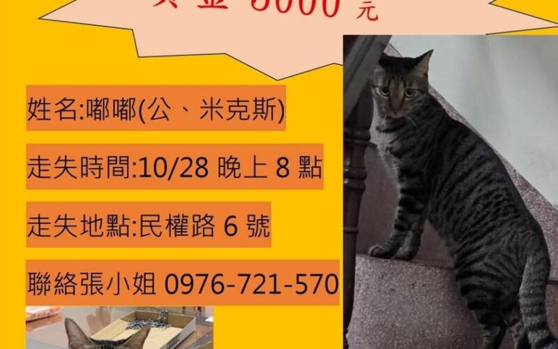 尋找貓咪~嘟嘟 地點 彰化縣芬園鄉 Fenyuan , Changhua
