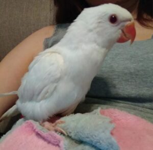 白月輪鸚鵡,有腳環有登記主人的聯絡姓名,電話