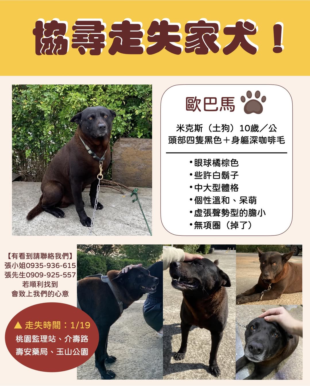 【尋找狗狗~歐巴馬 地點 桃園市桃園區】