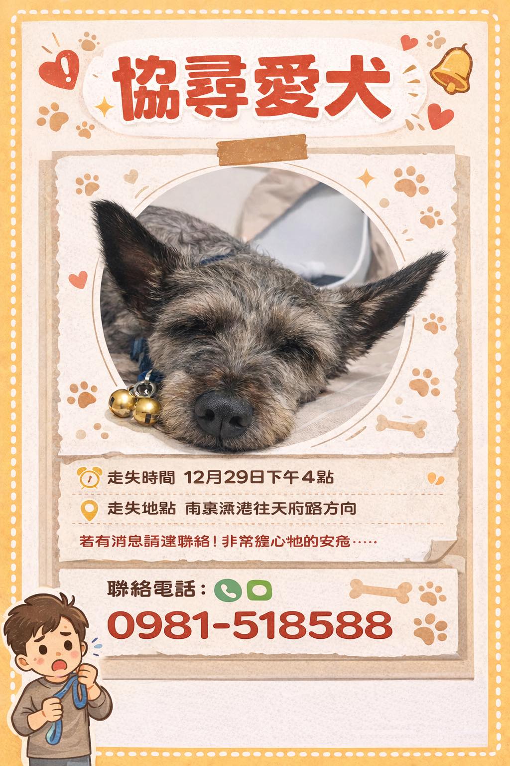 轉貼內容 (轉發)#感謝金3萬元 她是錢錢,去年12月29日在南寮漁港附近走失,往天府路方向跑去。 牠的爸爸、媽媽已連日尋找,白天找、入夜也找,但錢錢個性膽小,不曉得躲去哪裡,寒流來… https://twpetsearch.arlinks.net/2026/01/north-hsinchu.html