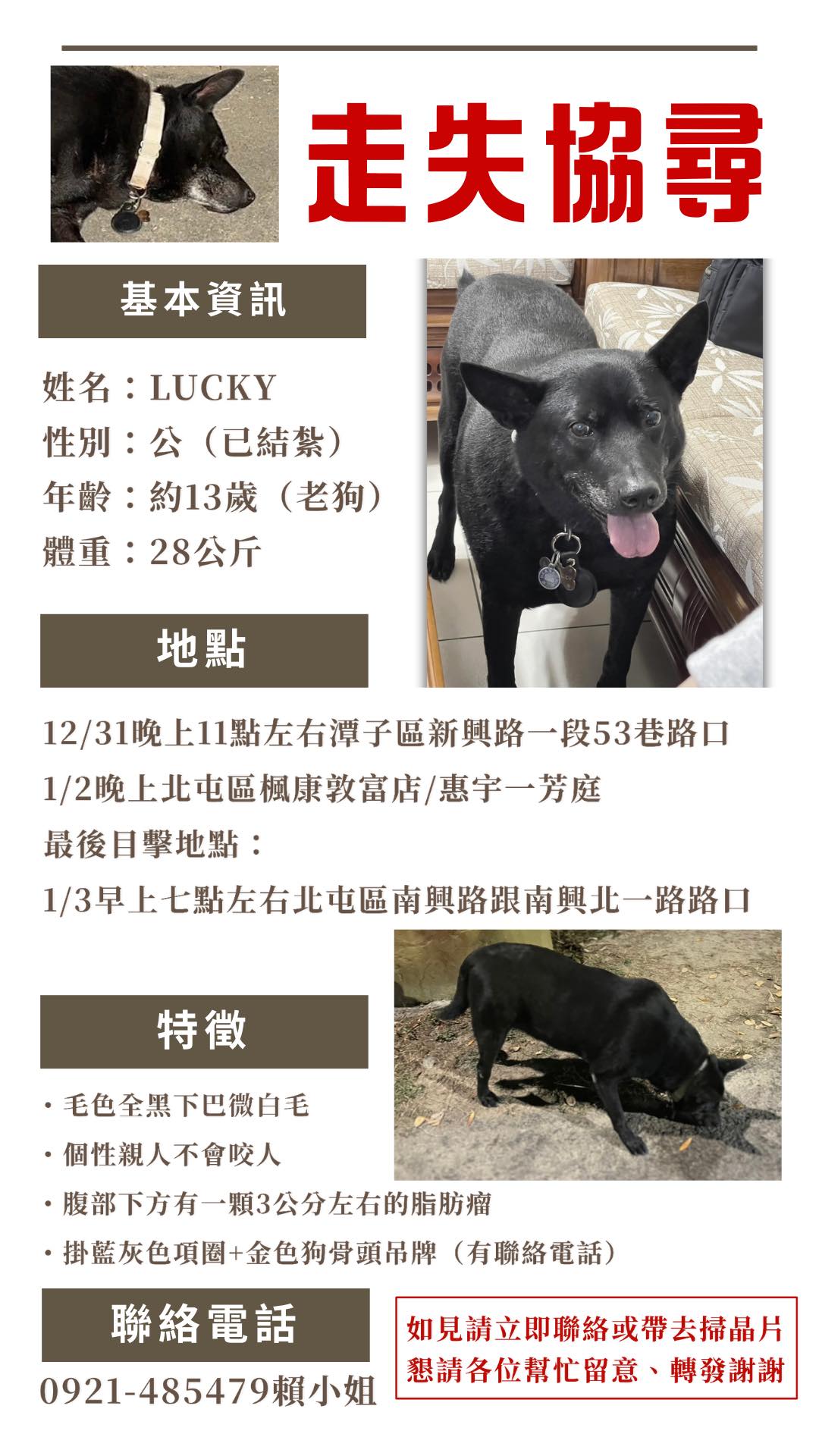 【尋找狗狗~Lucky 地點 台中市潭子區】