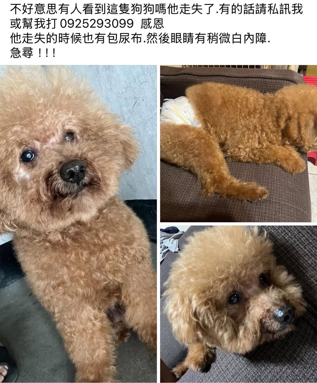 【尋找貴賓犬~娃娃 地點 新北市板橋區】 轉貼內容 緊急,我家狗狗不見了! 貴賓,母,娃娃,巧克力咖啡色,13歲,走失地...