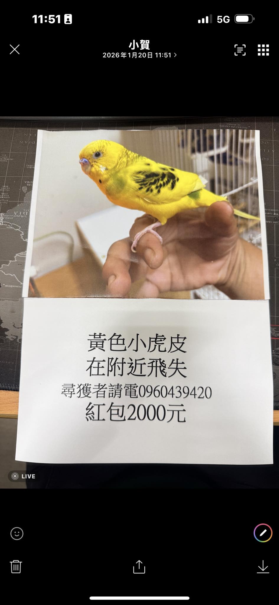 轉貼內容 1/18早上11點左右飛出門 烏日成功嶺附近 養2年了 名字:度咕 家裡有牠的老婆、小孩(幼鳥) 在等牠 麻煩各位大大有看見請聯絡 感恩🙏謝謝… https://twpetsearch.arlinks.net/2026/01/wuri-taichung-budgerigar.html