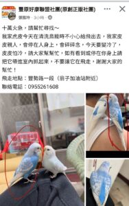 【代po】協尋:台中豐原/藍白色虎皮鸚鵡