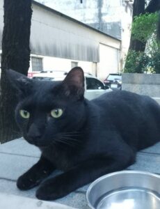 特徵:黑色母貓,有剪左耳,無尾巴