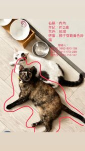 拜託大家幫忙留意,若有看到疑似特徵的貓咪,麻煩請電聯或私訊聯絡人,萬分感謝!