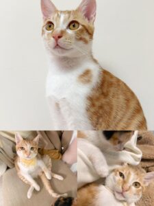 特徵:臉尖尖、脖子上有一個圓點的橘貓