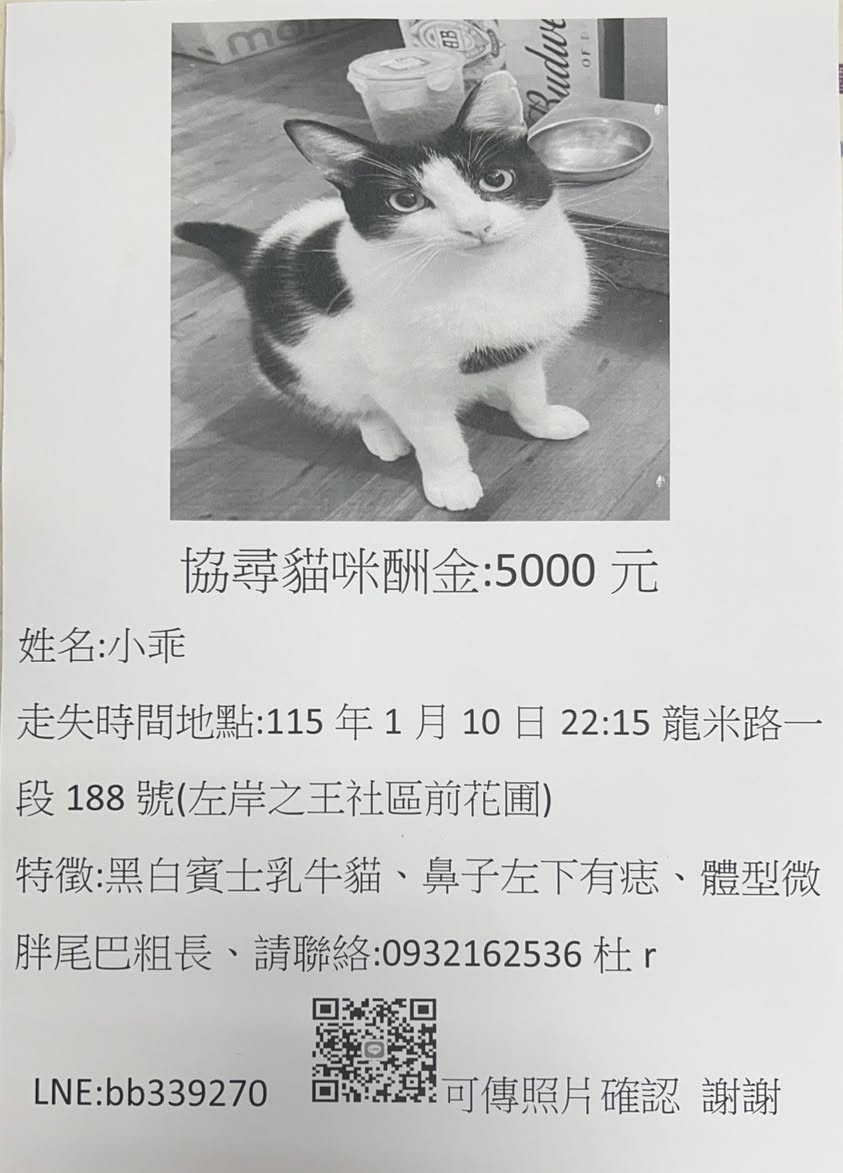 協尋貓咪酬金:5000 元… https://twpetsearch.arlinks.net/2026/01/bali-new-taipei.html