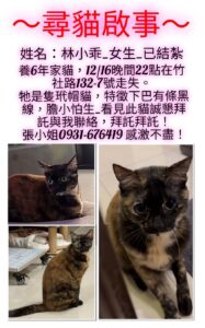 【尋找貓咪~林小乖 地點 彰化縣和美鎮】