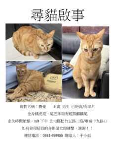 【尋找貓咪~費曼 地點 台中市北屯區】