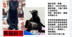 【尋找貓咪~黑糖 地點 新北市三重區】