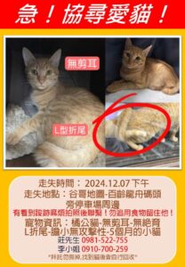 五個月大橘貓,男生,特徵《L型折尾》 膽小