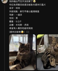 【尋找貓咪~ 地點 新竹市香山區】