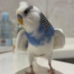 鳥有白化基因,眼睛是紅色!紫色臉頰紋,翅膀是灰色。身體是淡藍色,陽光好的時候顏色很明顯,暗處看著灰撲撲。