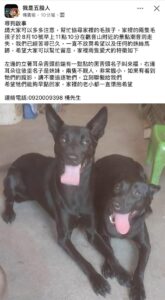 兩隻毛孩子於8月10號早上11點10分新北五股觀音山潮音洞附近走失,飼主已經苦尋已久,希望大家可以幫忙…