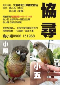 【尋找太陽鸚鵡~鸚小五、鸚小陽 地點 桃園市大溪區】