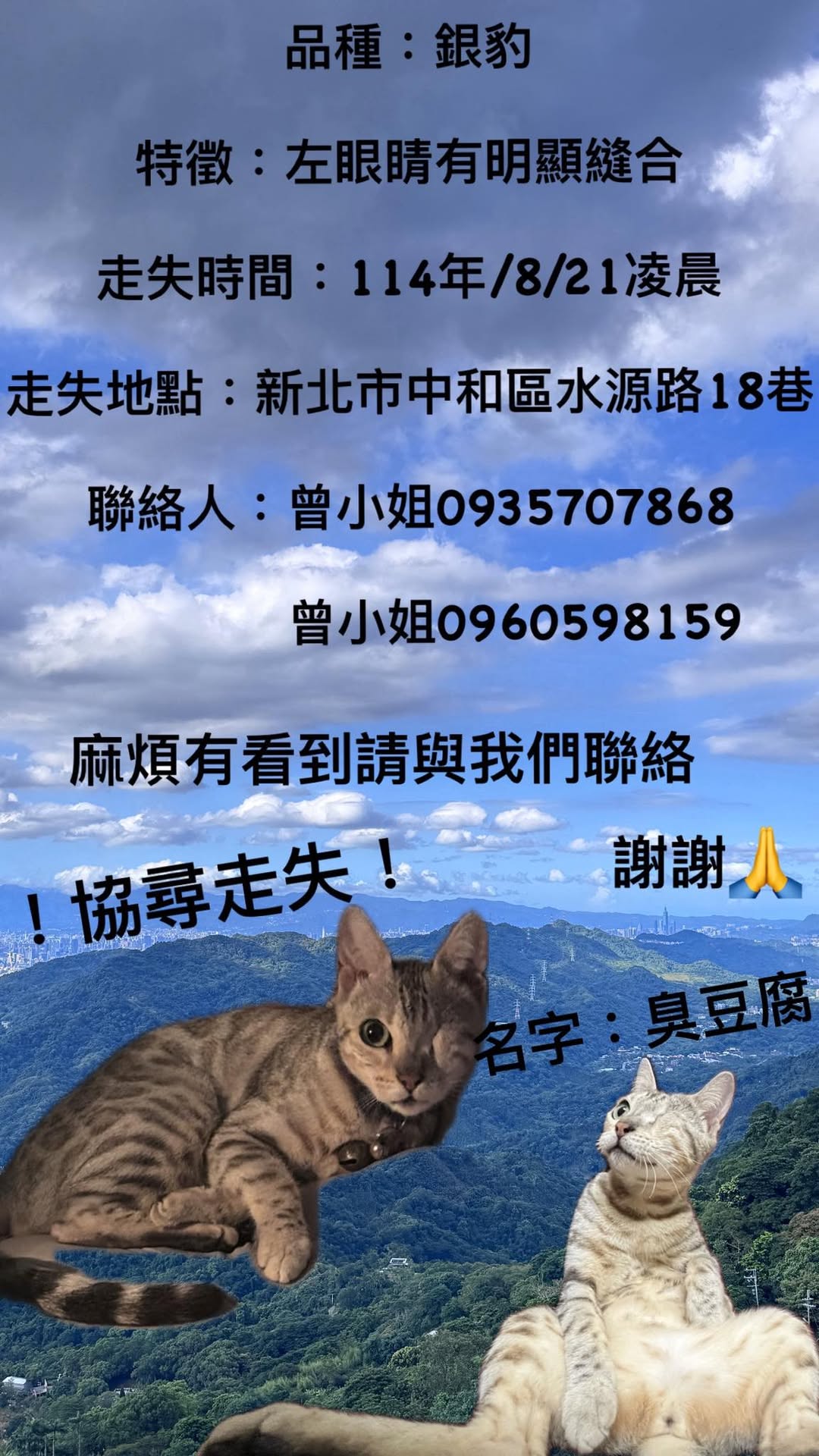 【尋找貓咪~臭豆腐 地點 新北市中和區】