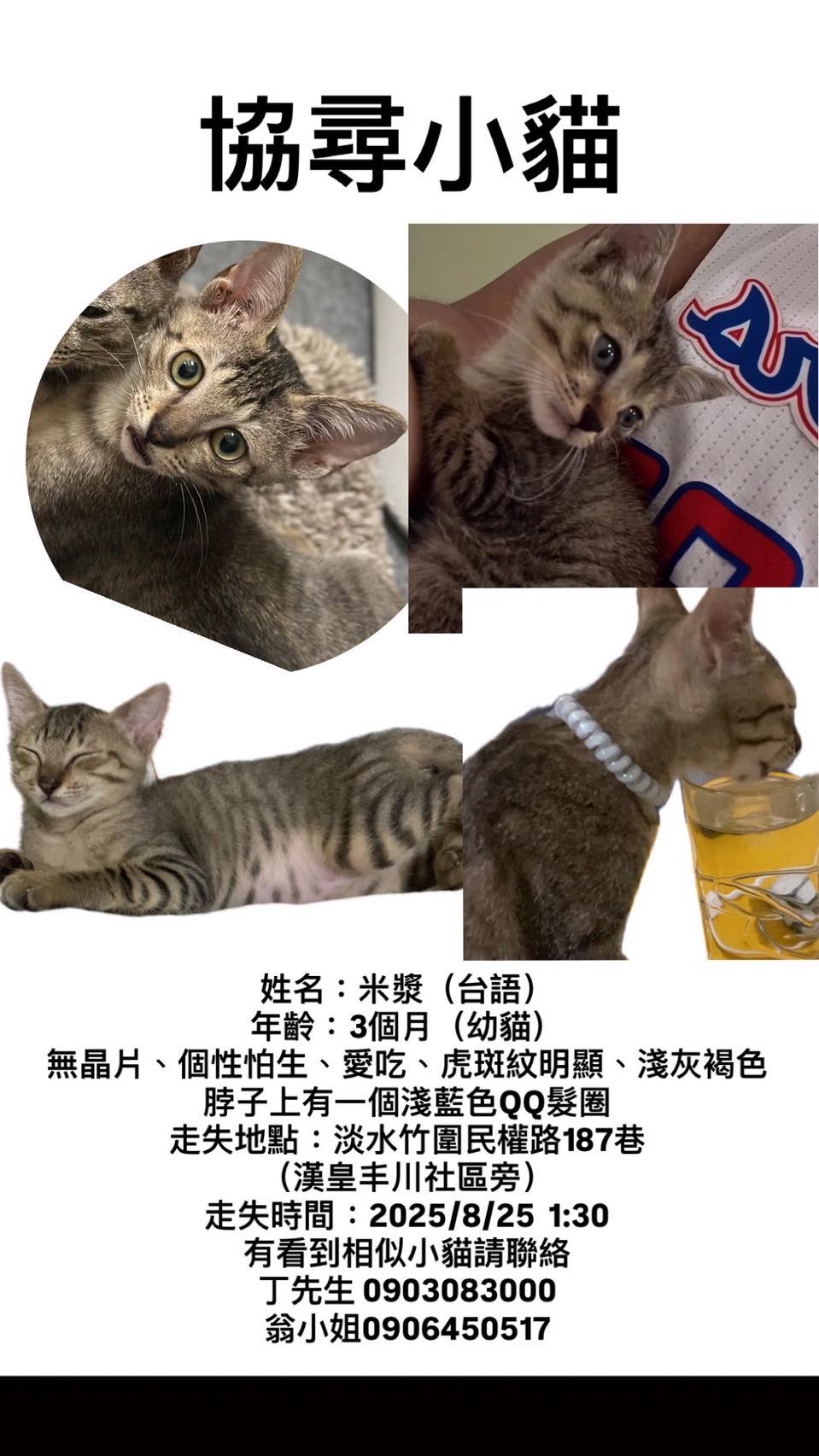 【尋找貓咪~米漿 地點 新北市淡水區】