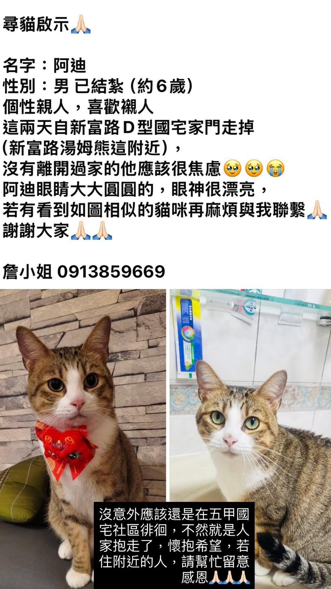 尋貓啟示🙏 名字:阿迪 性別… https://twpetsearch.arlinks.net/2025/08/north-taichung.html