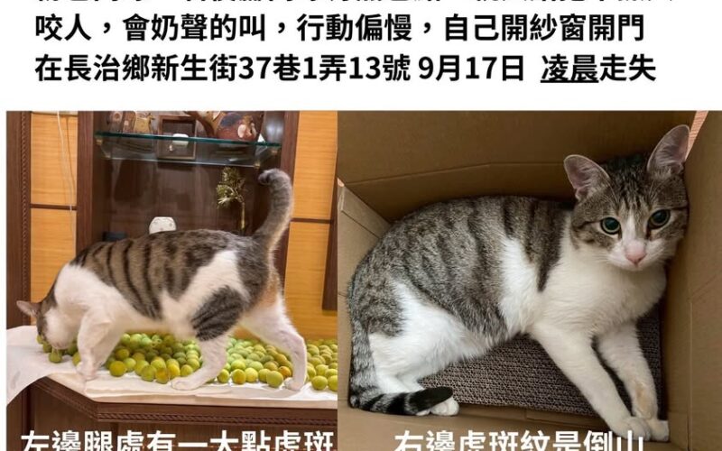 【尋找貓咪~ 地點 屏東縣屏東市】 轉貼內容 9/