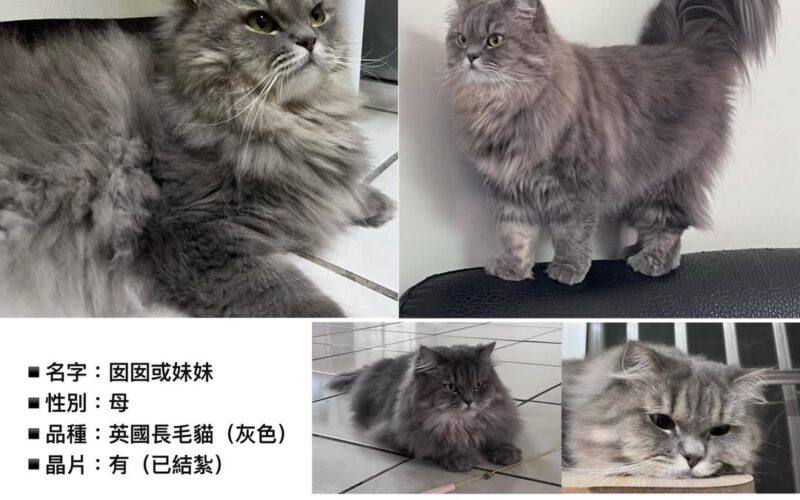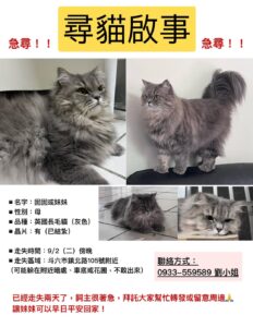 【尋找英國長毛貓~囡囡(妹妹) 地點 雲林縣斗六市】