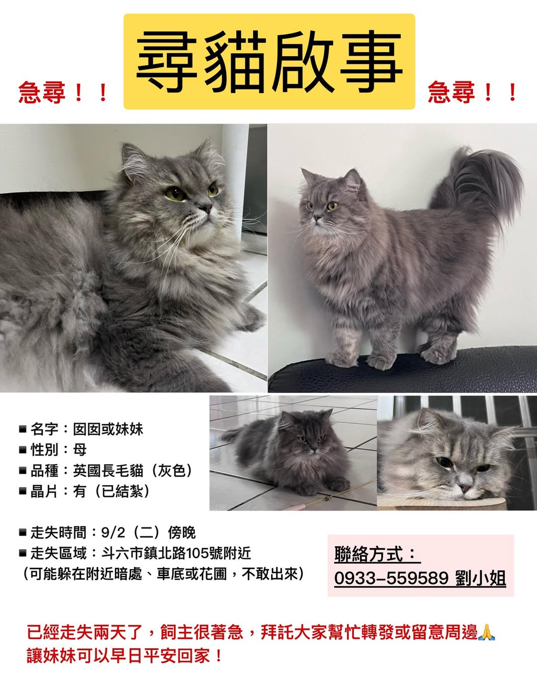 走失時… https://twpetsearch.arlinks.net/2025/09/douliu-yunlin-british-longhair.html