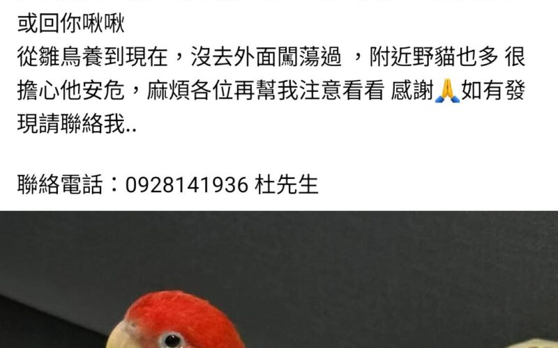 【尋找小鸚~啾啾 地點 新北市新莊區】