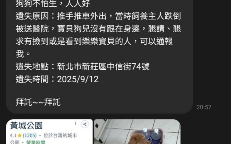 遺失原因:推手推車外出,當時飼養主人跌倒被送醫院,寶貝狗兒沒有限跟在身邊,懇請、懇求有撿到或是看到樂樂寶貝的人,可以通報我。