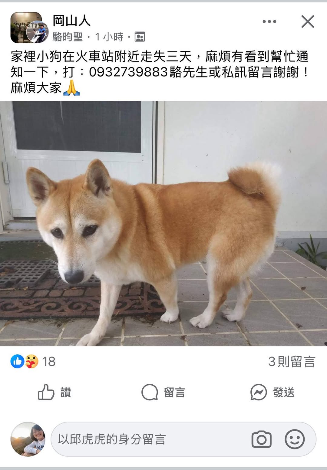 家裡小狗在火車站附近走失三天,麻煩有看到幫忙通知一下,打:0932… https://twpetsearch.arlinks.net/2025/09/gangshan-kaohsiung-shibainu.html