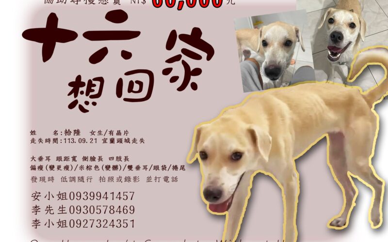 【尋找狗狗~拾陸 地點 宜蘭縣頭城鎮】