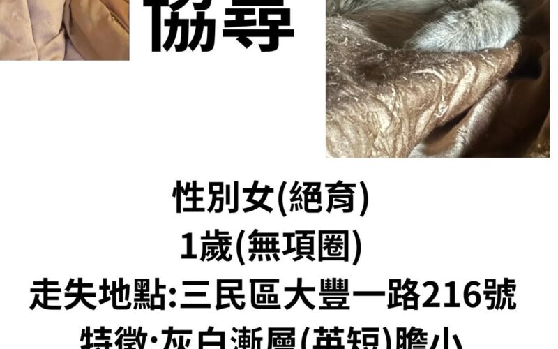 【尋找英國短毛貓~ 地點 高雄市三民區】