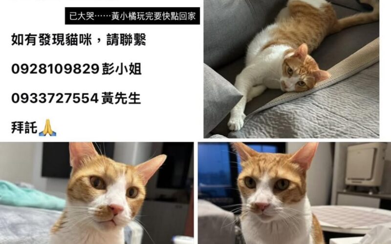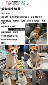 【尋找貓咪~小橘 地點 苗栗縣頭份市】