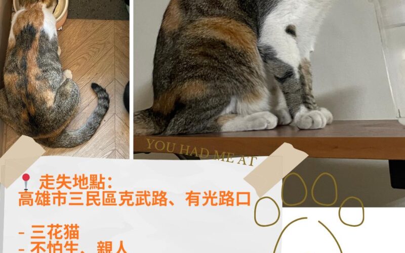 【尋找貓咪~薯條 地點 高雄市三民區】