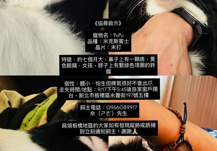 【尋找貓咪~PuPu 地點 新北市板橋區】