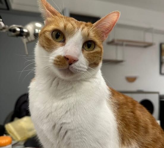 特徵:橘白貓、嘴巴那邊橘橘的一塊、體型偏小、公貓沒有剪耳、有植入晶片