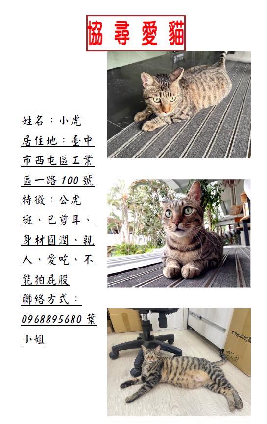 【尋找貓咪~小虎 地點 台中市西屯區】
