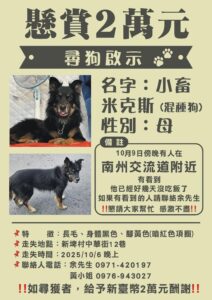 【尋找狗狗~小蓄 地點 屏東縣新埤鄉】