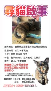 【尋找貓咪~輝煌(灰黃) 地點 宜蘭縣三星鄉】