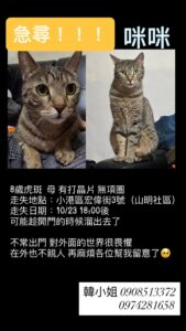 【尋找貓咪~咪咪 地點 高雄市小港區】