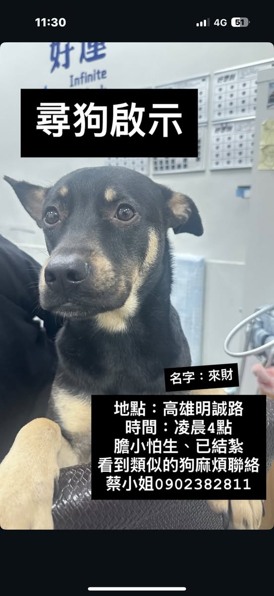 【尋找狗狗~來財 地點 高雄市左營區】