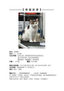 【尋找貓咪~黃滴噠 地點 台中市潭子區】