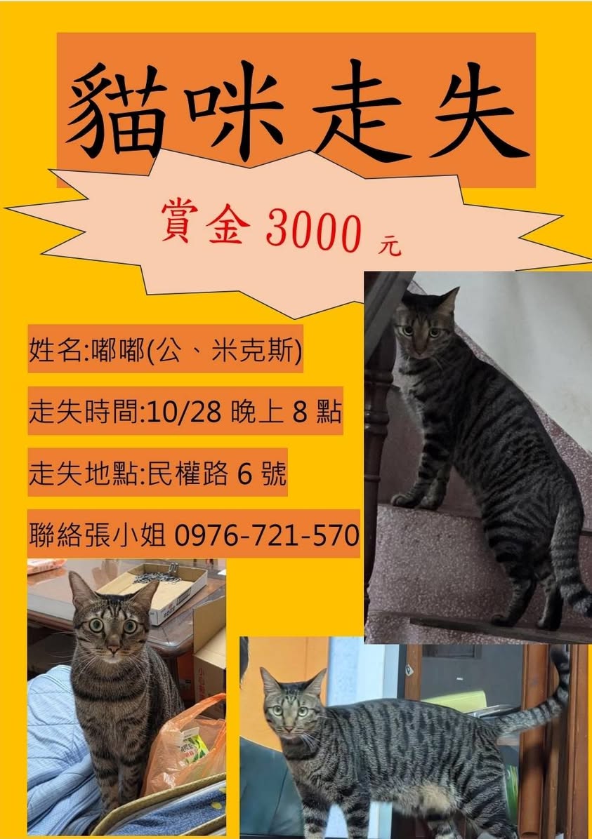 姓名:嘟嘟(公,米克斯) 走失時間:10/28 晚上 8 點 走失地點:民權路 6 號 聯絡:張小姐 0976-… https://twpetsearch.arlinks.net/2025/10/fenyuan-changhua.html