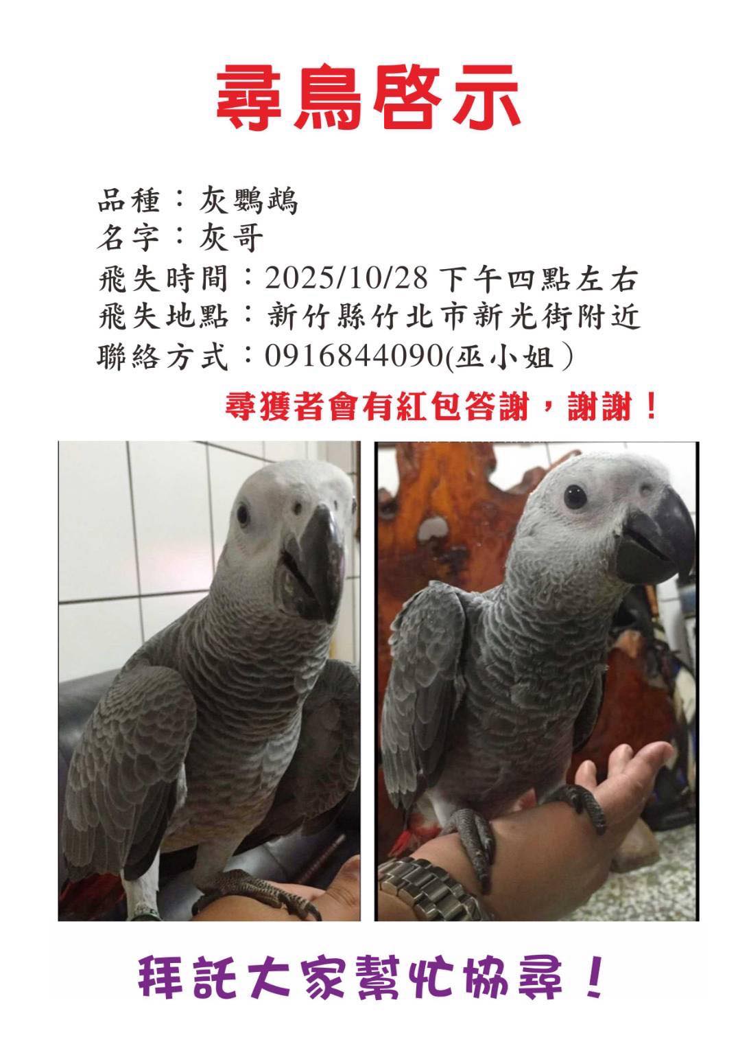 【尋找非洲灰鸚鵡~ 地點 新竹縣新豐鄉】 轉貼內容 麻煩大家 #新豐康樂路ㄧ段附近 https://twpetsearc...