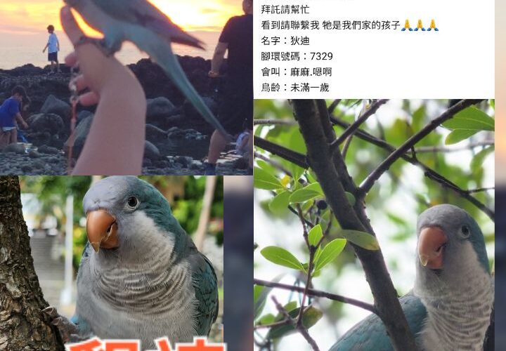 繼續閱讀【尋找塞內加爾鸚鵡~呆呆 地點 台中市西屯區】 轉