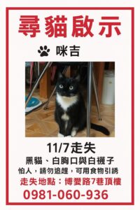 【尋找貓咪~咪吉 地點 新北市新莊區】
