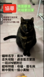 【尋找貓咪~戴妹 地點 桃園市觀音區】