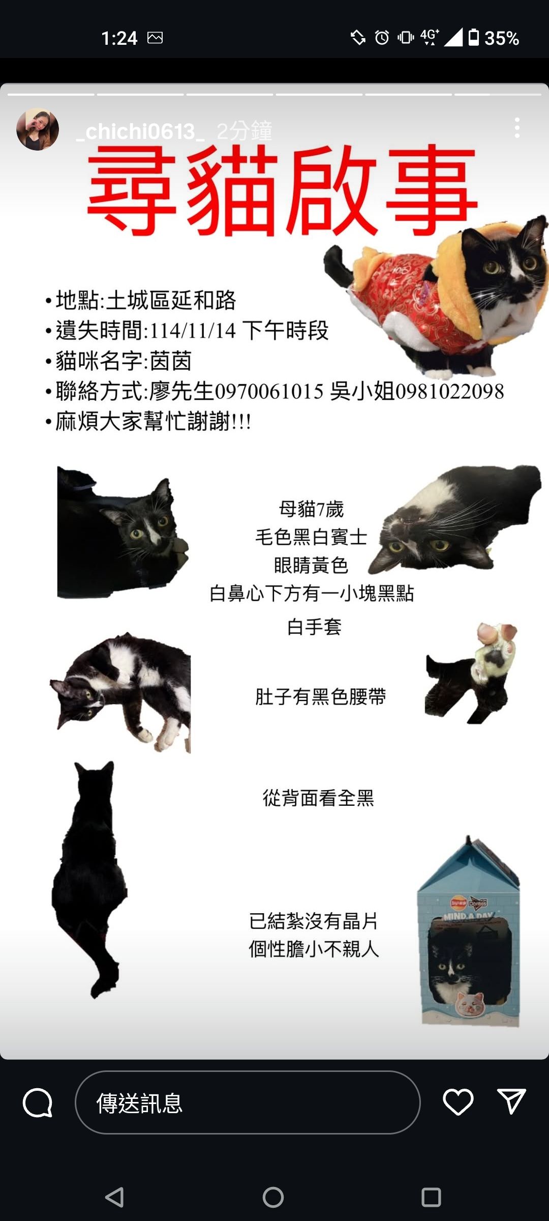 尋貓啟事 • 地點:土城區延和路 • 遺失時… https://twpetsearch.arlinks.net/2025/11/tucheng-new-taipei_17.html