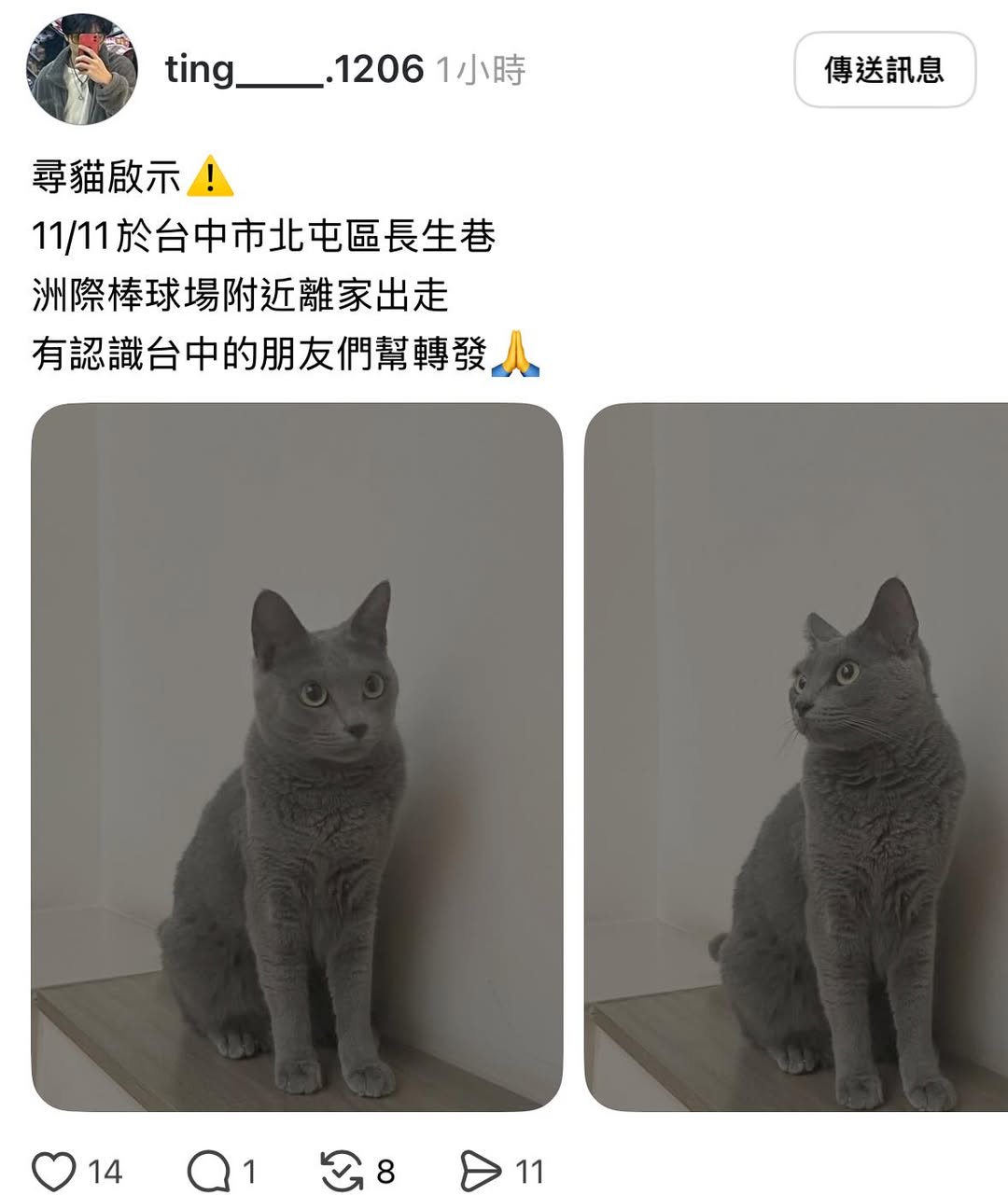 轉貼內容 尋貓啟事 #走失#台中#洲際棒球場… https://twpetsearch.arlinks.net/2025/11/beitun-taichung_17.html