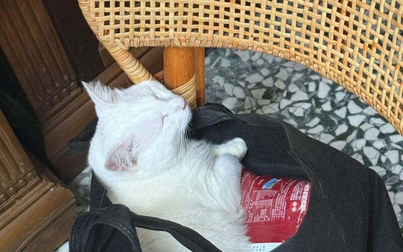特徵:毛色純白 無項圈 有晶片 有點胖…..